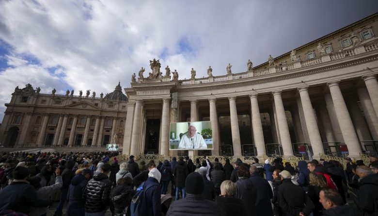 “¡Que las armas callen y que resuenen los villancicos!”, dijo Francisco, impartiendo su bendición dominical desde el interior debido a un resfriado y como precaución antes de un período navideño ajetreado.